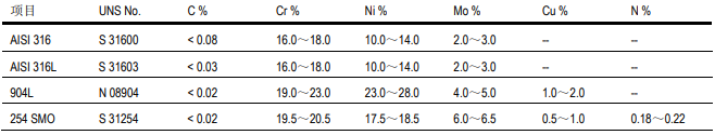 4、当原水含盐量在7,000~30,000ppm时,建议选用含钼量为4.0~5.0%的904L不锈钢;