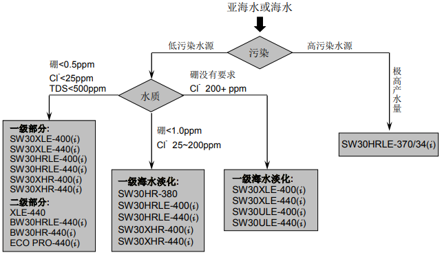FILMTEC™系列陶氏反渗透膜元件根据进水含盐量的选型指南